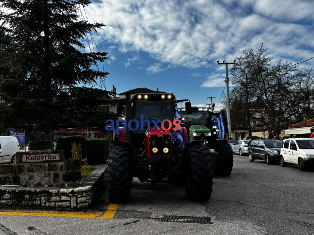 Στις 11 το πρωΐ έγινε αποκλεισμός της εισόδου της πόλης των Καλαβρύτων, για λίγη ώρα.