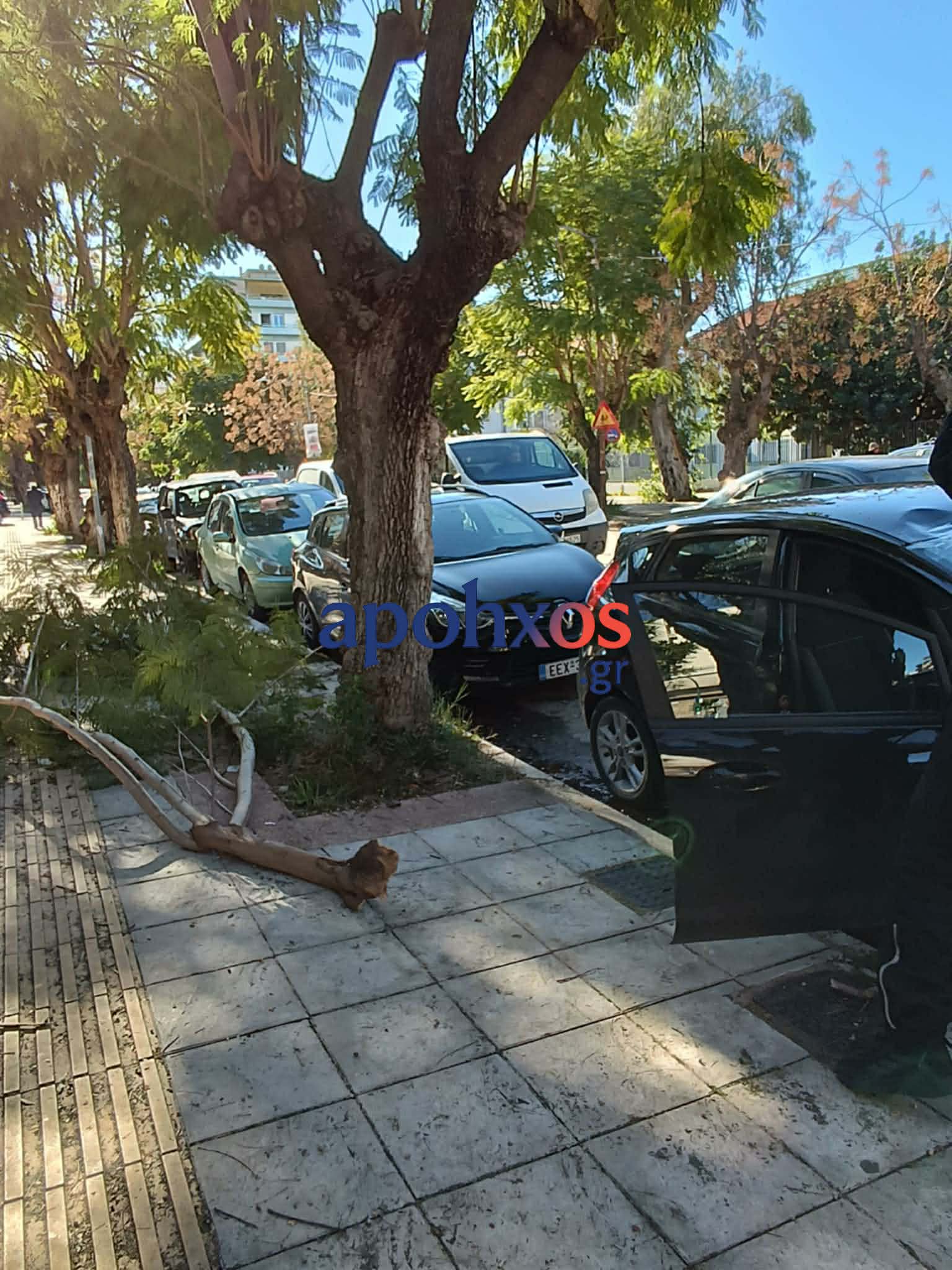 Άγιο είχε οδηγός στην Πάτρα, που είχε παρκάρει το όχημα της στην οδό Έλληνος Στρατιώτη, στη συμβολή με την Αγία Σοφία, λίγα μόλις μέτρα πριν το φανάρι. Ευτυχώς δεν βρισκόταν στο σημείο την ώρα που μεγάλο κλαδί αποκολλήθηκε από δέντρο.