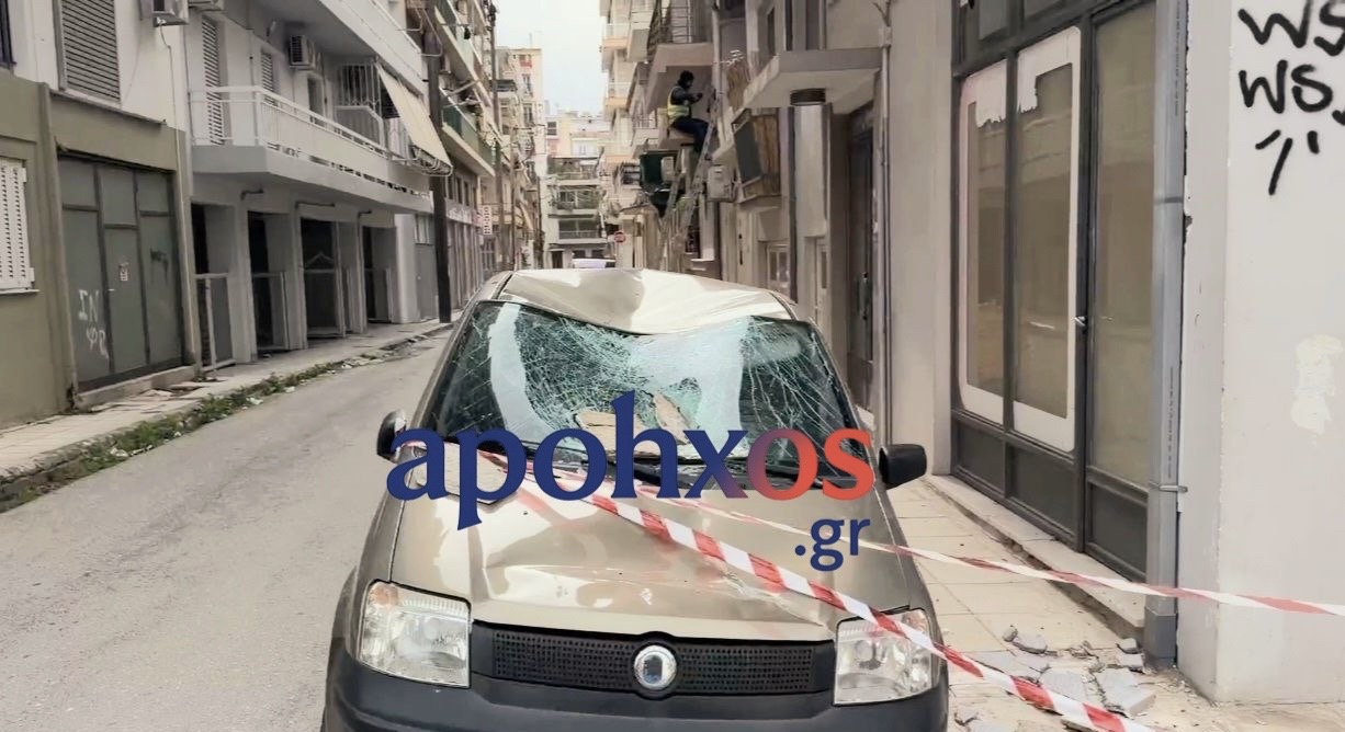 Τσιμέντα από κτίριο στη συμβολή των οδών Καποδιστρίου και Πετμεζά στην Πάτρα έπεσαν ευτυχώς χωρίς τραυματισμούς.