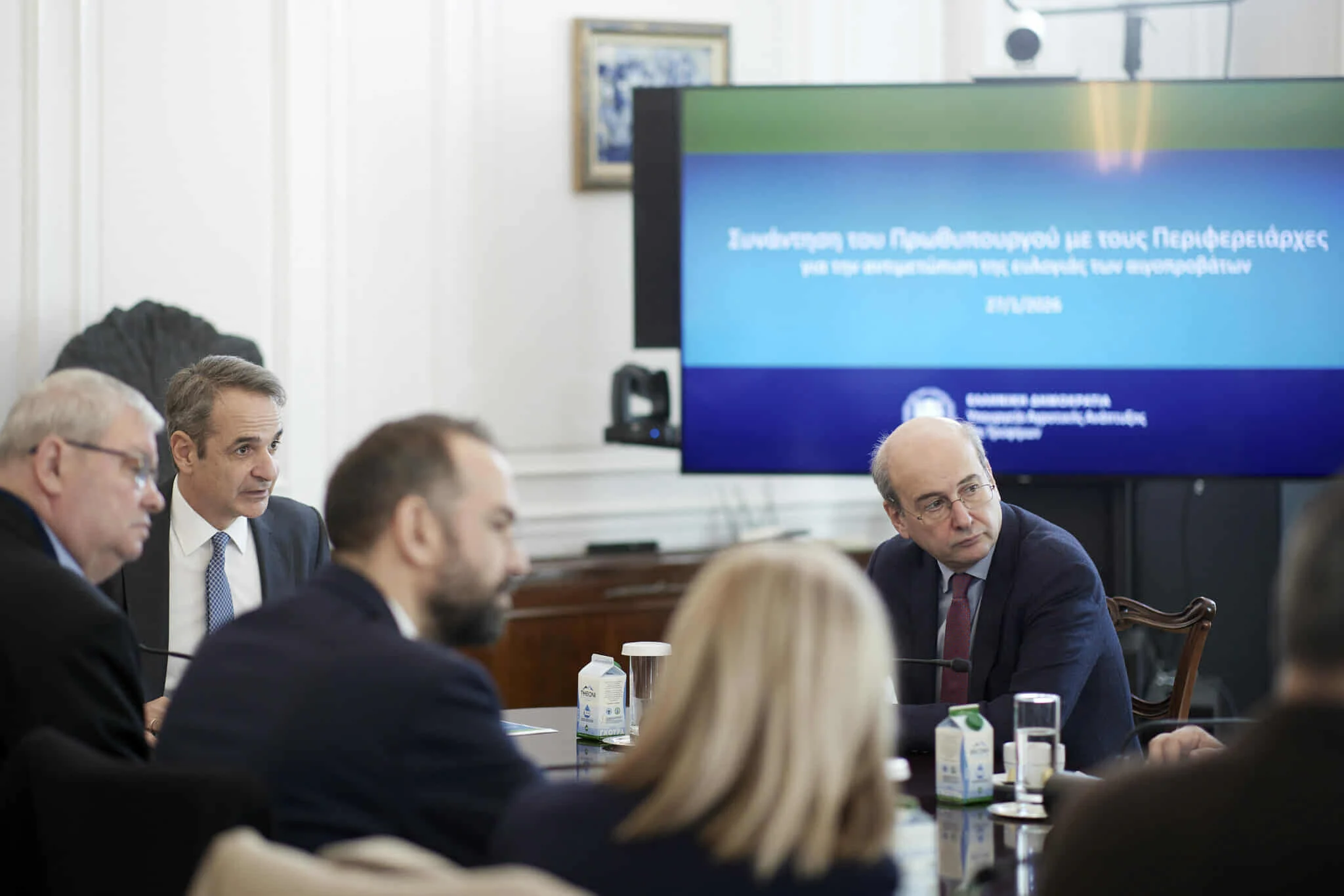 Η περαιτέρω ένταση των μέτρων βιοασφάλειας για την ευλογιά των αιγοπροβλάτων αποφασίστηκε στη σύσκεψη υπό τον Κυριάκο Μητσοτάκη στο Μέγαρο Μαξίμου με τη συμμετοχή της ηγεσίας του υπουργείου Αγροτικής Ανάπτυξης και των περιφερειαρχών από τις περιοχές που έχουν δοκιμαστεί περισσότερο από τη νόσο.