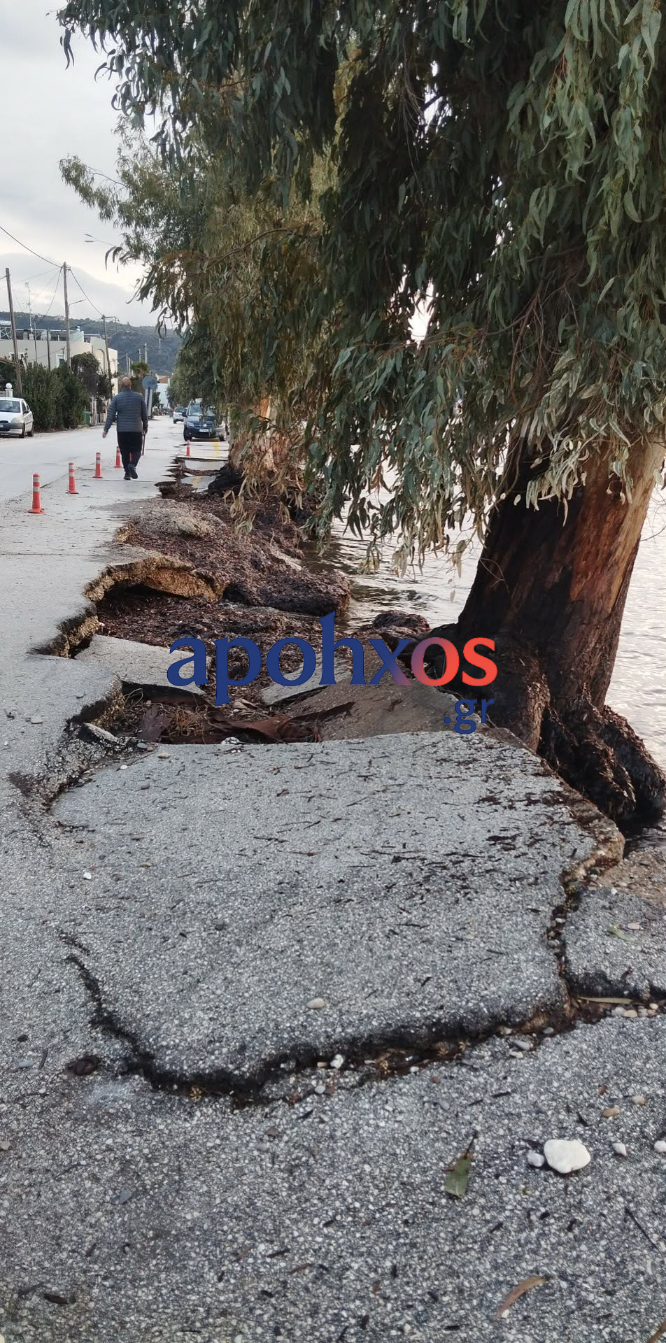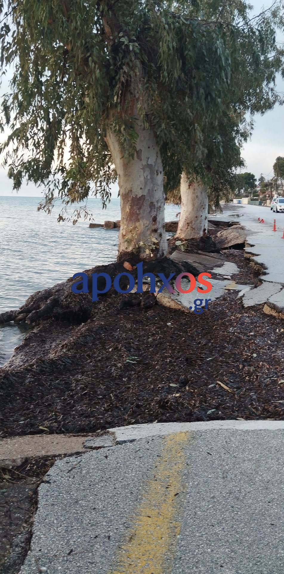 Το πρόβλημα της διάβρωσης της ακτής γίνεται ολοένα και μεγαλύτερο, με το έδαφος να υποχωρεί επικίνδυνα. Δέντρα που βρίσκονται κοντά στη γραμμή της θάλασσας εμφανίζονται πλέον «κρεμασμένα», έτοιμα να ξεριζωθούν, ενώ δεν αποκλείεται, αν η κατάσταση συνεχιστεί, να απειληθούν και παρακείμενες υποδομές.