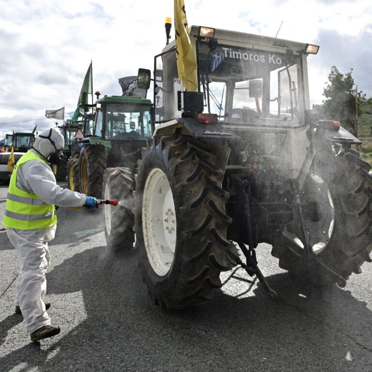 Η ΕΛ.ΑΣ. έχει εγκαταστήσει δύο σταθμούς απολύμανσης για την ευλογιά των προβάτων, για προληπτικούς λόγους και σε συνεννόηση με τους αγρότες, στα διόδια Αφιδνών και Ελευσίνας, απ’ όπου θα περάσουν όλα τα τρακτέρ.