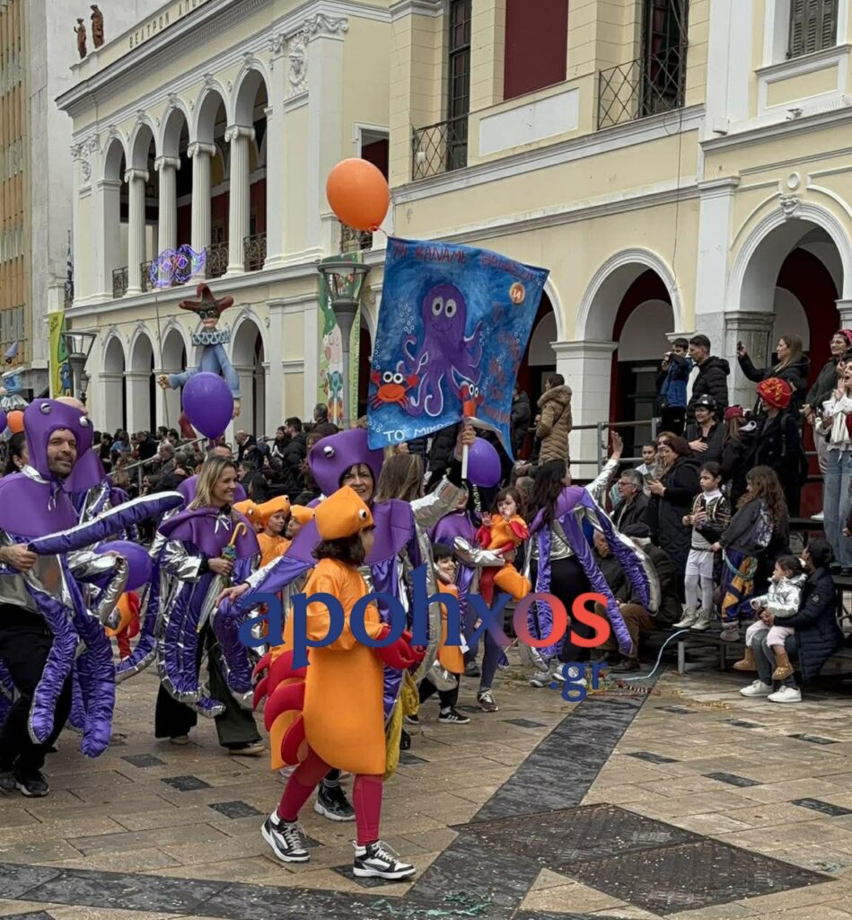 Τον τόνο στην αποκριάτικη διασκέδαση των παιδιών έδωσε η Δημοτική Μουσική και η μασκότ του Καρναβαλιού των Μικρών, ο Τζίτζικας.