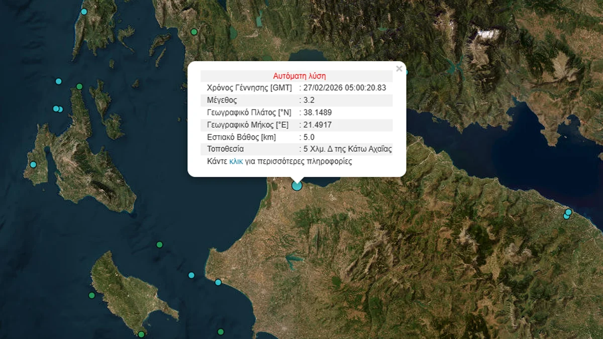 Σεισμός 3,2 Ρίχτερ στην Κάτω Αχαΐα