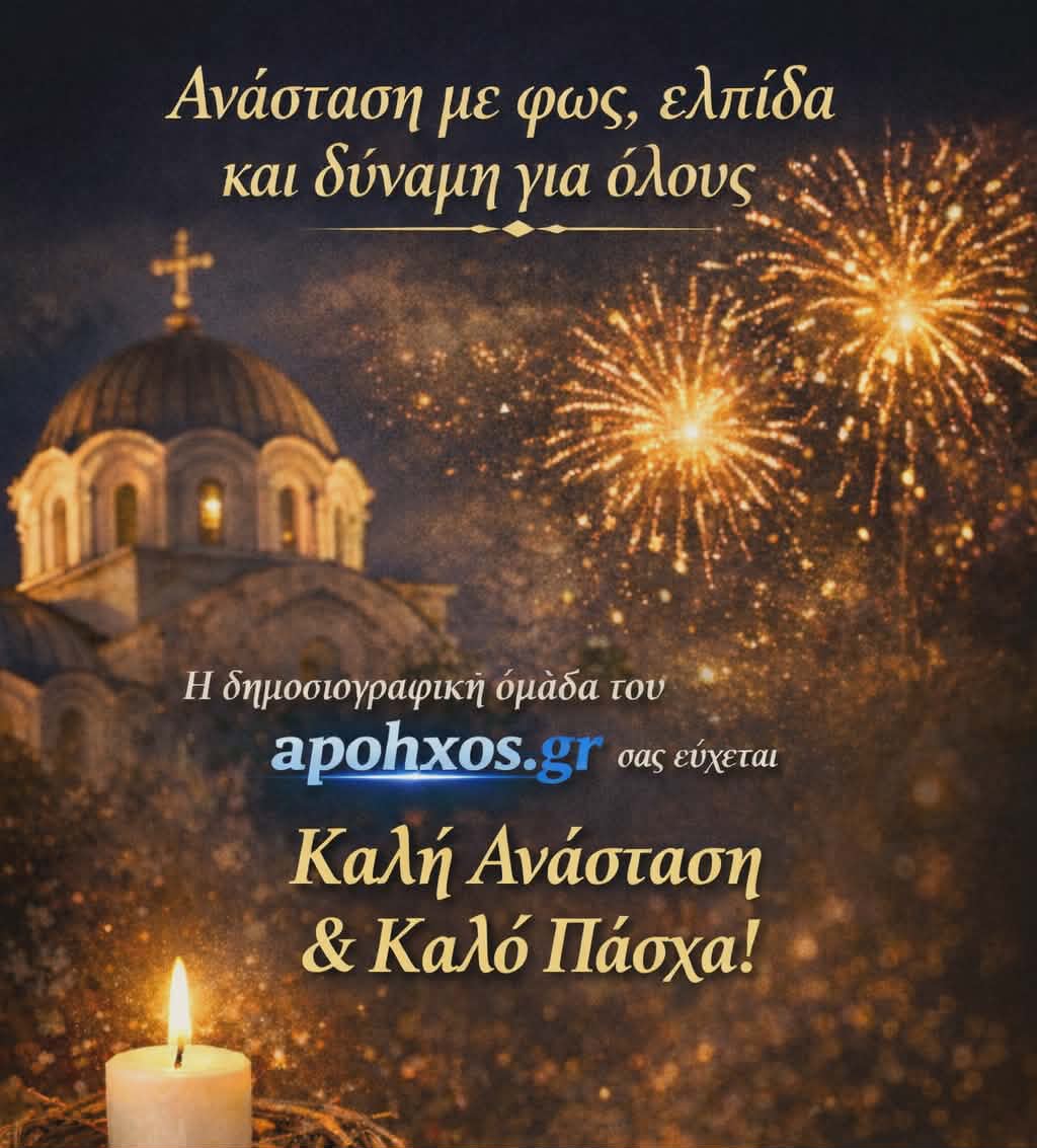 Η δημοσιογραφική ομάδα του apohxos.gr εύχεται σε όλους τους αναγνώστες και τις οικογένειές τους Καλό Πάσχα και Καλή Ανάσταση. Το φως της Ανάστασης να γεμίσει τις ζωές σας με υγεία, χαρά, προσωπική και συλλογική πρόοδο.