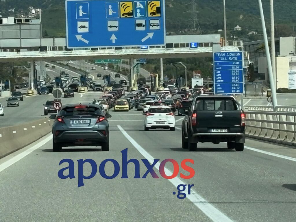 Ουρές σχηματίζουν τα οχήματα κατά τη διέλευση τους από τα διόδια στην Αθηνών – Κορίνθου και στην Αθηνών – Λαμίας.