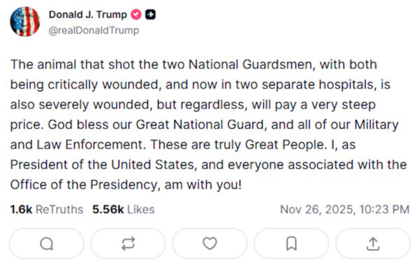 Αρκετοί άνθρωποι δέχθηκαν πυρά στην Ουάσιγκτον την Τετάρτη (26.11.2025), μεταξύ…
