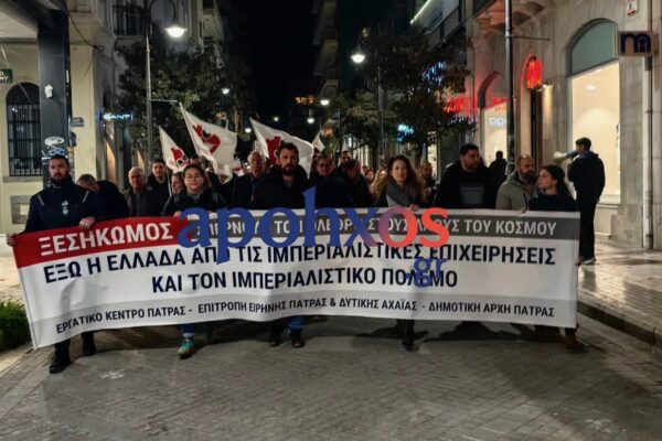 Αντιπολεμικό συλλαλητήριο πραγματοποιήθηκε απόψε στους κεντρικούς δρόμους της Πάτρας.