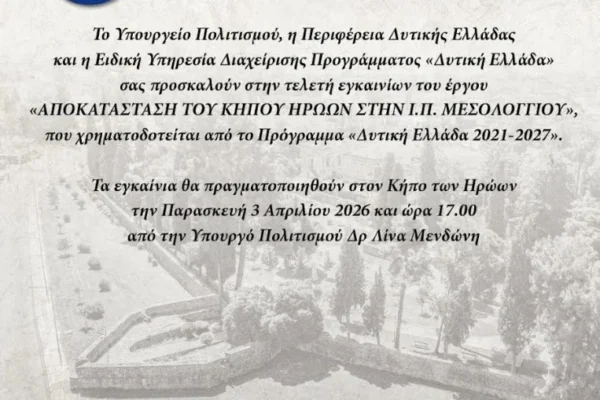Την Παρασκευή 3 Απριλίου θα πραγματοποιηθούν τα εγκαίνια του αποκατεστημένου…