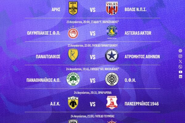 Ανακοινώθηκαν σήμερα (11/08) από την Stoiximan Super League οι ακριβείς…