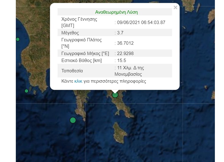 Σεισμική δόνηση πριν από λίγο στην Μονεμβασιά